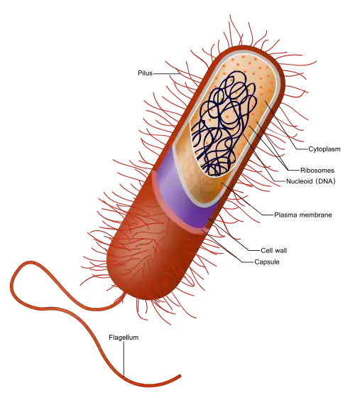 - flagella (singular: flagellum) - helps with movement of the bacterium.