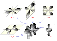 d-orbital splitting: This is where the d-orbitals are in an (octahedral) transition metal complex so are no longer isolated. Six coordinate bonds are formed along the same axis as the 3dz2 and 3dx2y2 orbitals. Consequently, these orbitals are of higher energy than the other orbitals. This creates a higher tier energy level orbitals with an energy gap between them and the lower energy orbitals and is labelled ΔE.