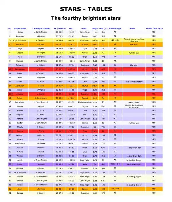 - Dist.(ly): approximate distance of the star, expressed in light-years.