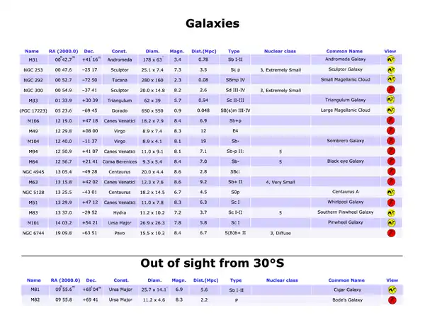 - Magn.: the apparent magnitude of the galaxy; a symbol “:” after this value means an approximation.