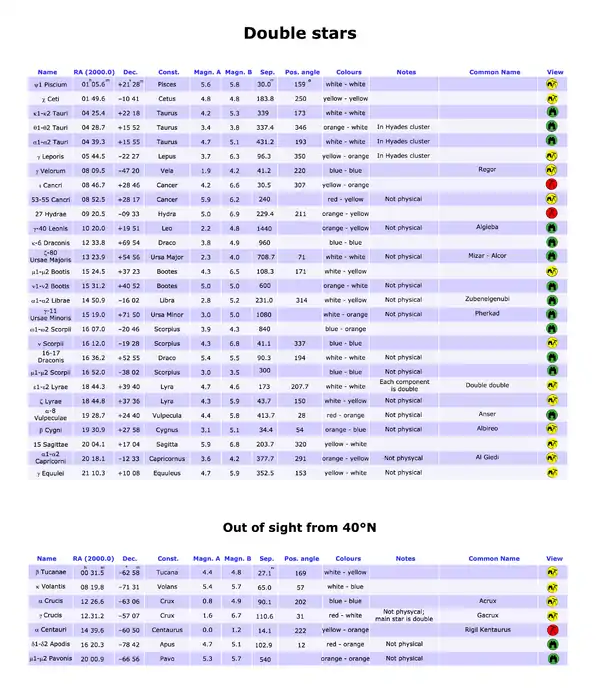 - Spectrum: the spectral class of the star. In eclypsing binaries, the spectra of both the components are indicated; in pulsating variables, the variation of the spectrum is showed.