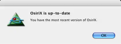 This selection will compare your current version of OsiriX against the latest version at OsiriX World Headquarters. If you have the most current version, you will see: