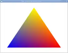 Now in the render procedure, we can pass 1 RGB color for each of our 3 vertices. I chose yellow, blue and red, but feel free to use your favorite colors :)