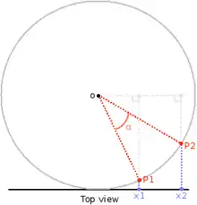 Once we have OP1 and OP2 (here named va and vb), we can compute the angle with acos(dot(va,vb)).