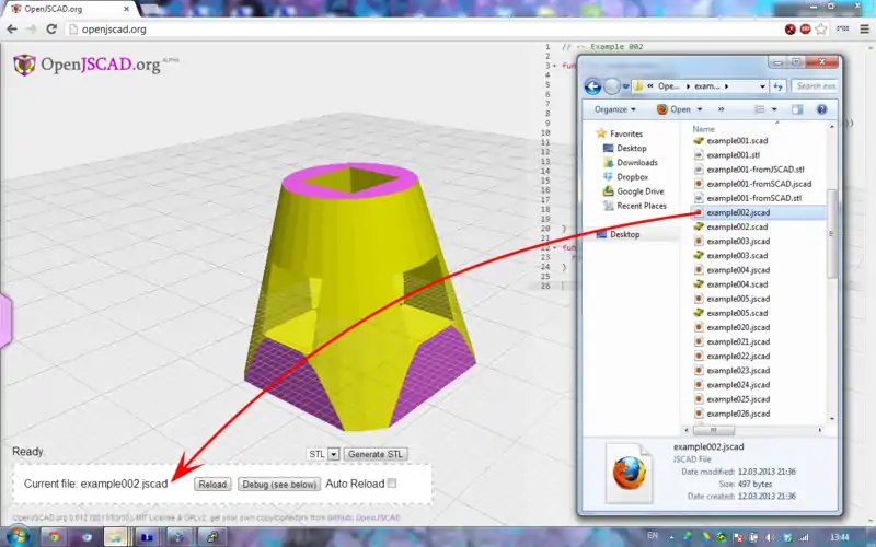- Firefox (Version 19+): drag & drop all jscad files of the project to the drag & drop zone