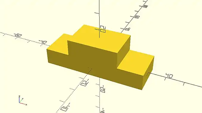 a_smaller_cube_covered_by_a_bigger_cube.scad cube([60,20,10],center=true); cube([30,20,10],center=true); |