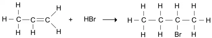 There are several ways to halogenate Alkenes. The simplest is by adding appropriate hydrogen halides, where the reaction follows Markovnikov's rule. This rule states that the halogen will become bonded to the more highly substituted carbon. This is a result of greater carbocation stability of more highly substituted carbon atoms, which have more ability to distribute the positive charge to the attached alkyl groups. When both carbon atoms have the same number of substituents, a mixture of products will often result.