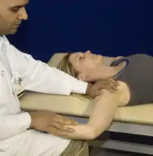 - Clavicle external rotation: the shoulder is abducted to 90o and rotated backward about the elbow