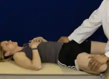 | External rotation | Flex the hip and flex the knee while externally rotating the hip to its barrier | ![]() Spencer's technique of the hip - external rotation |