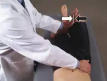 | Extension | Knee is extended off the table | ![]() Spencer's technique of the hip - extension |