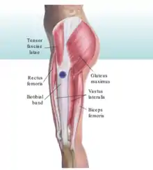 | Iliotibial band | Anterolateral iliac tubercle portion of the external lip of the iliac crest | Lateral condyle of the tibia |