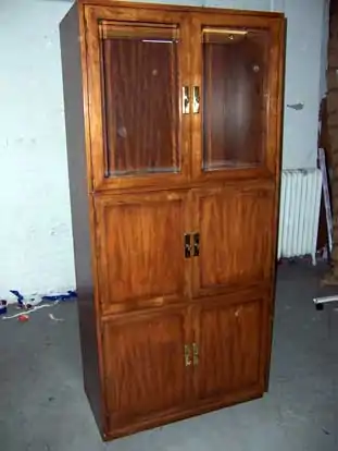 For instance, as has been done below, people will be taught how to tightly and snuggly pad an armoire and cardboard its glass (if it has any) in order to protect it during moving.
