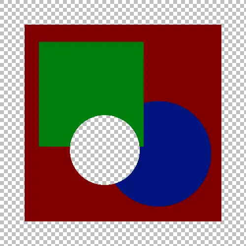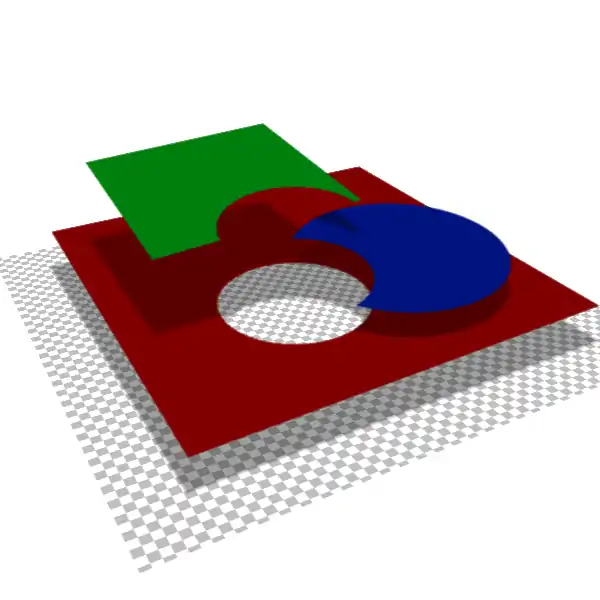 Note that the checkerboard pattern is the "tabletop" on which the image is built. In addition, there is no perspective inherent in layers - layers at the bottom of the image do not appear any further away from the viewer. Each layer may be viewed as a transparency upon which the image is painted. The layer's transparency may be adjusted, as well as the manner in which it interacts with the layers below it ("blending modes").