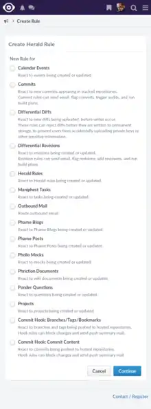 Herald is a Phabricator component designed to trigger actions if some rules are matched.[1]