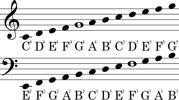 In written music, every line and space represents a note on the staff. The notes on the piano are named using the first seven letters of the alphabet (A through G). You must memorize each letter name to the assigned spot on the staff. However, remember that the bass clef and treble clef have lines and spaces that correspond to different note letters.