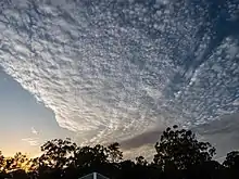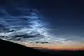 A number of strange cloud formations have been given names and described. The most iconic is likely the Lenticularis clouds, which resemble gigantic circular UFOs. They are a type of altocumulus cloud which are carved by wind into oval-like shapes high in the sky. Virga clouds are thin wispy clouds that drape down from rain clouds. Virga are caused by precipitation that falls from the underside of a cloud, often the moisture evaporates before it reaches the ground, although it can cause a light shower of rain or snow directly below its veil. Mackerel Sky is a sailor term for a sky filled with rows of small cirrocumulus or altocumulus clouds displaying a speckled pattern of clouds that look slightly like the scales of mackerel fish, caused by high altitude atmospheric winds. Mackerel Skies are often used by sailors to forecast rain, since they occur as barometric pressures fall, indicating a low-pressure system is developing. Nacreous clouds are only found in Artic regions, and are high iridescent-colored clouds that form near the top of the Troposphere when the atmospheric is extremely cold. They are most often observed in cold and dry polar regions, and are formed from ice crystals high in the atmosphere. They are often referred to as polar stratospheric clouds, and are sought after by cloud watchers. Noctilucent clouds are scientifically interesting rare clouds that are found within the Mesosphere, at very high altitudes above Earth. They are often observed following a major volcanic eruption, and are thought to be caused by volcanic dust and water vapor that is injected into the high Mesosphere where they form wispy thin clouds best seen near sunset or sunrise. They have been observed after rocket launches, when particulates and water vapor are carried high into the atmosphere from the rockets as they combusted fuel during lift off. Mammatus clouds are pillow-like clouds that can form below cumulonimbus clouds, the term comes from the Latin word for breast or utter, mamma. Kelvin–Helmholtz clouds are caused by velocity differences between two layers of the atmosphere, which results in wave-like clouds that resemble crashing ocean waves. They are named after English physicist Lord Kelvin and German physicist Hermann von Helmholtz who both described the physics of these wave formations in the 1860s and 1870s. Arcus clouds are a rare storm clouds that rolls across the sky. They are associated with cold fronts and thunderstorms, which cause the clouds to appear to roll over the landscape. They are known by other names, including Roll clouds, Shelf clouds, or Volutus clouds. Arcus clouds are related to the phenomena of rolling giant dust clouds called haboob, which comes from the Arabic term for blasting or drifting. Haboobs form where strong gushes of wind blow across an arid landscape lifting dust and particles into the air. They proceed thunderstorms and advancing lower pressure fronts, which bring strong winds. Haboobs can cause respiratory problems since these airborne dust particles can be breathed in by people trapped in these storms. Sun dogs, or parhelion are strange and rare atmospheric events that cause the sun to appear to have two bright spots that flank the sun on either side. These sun dogs are caused by ice crystals within cirrus or cirrostratus clouds reflecting a large halo around the sun around 22 degrees to either side. These Sun dogs can be particularly bright when the sky contains thin cirrus clouds which reflect the sunlight passing through them.
