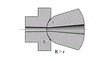 - The spherical radius of the nozzle R must be minor or equal to the radius of the indentation of the sprue bushing r (generally it is 1 mm less).