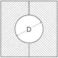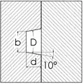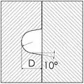 The sprue channel is originated by a sprue bushing that conveys in the channel the plastic flow coming from the nozzle of the press. The sealing of the channel with the nozzle is obtained by contact only, by the force applied from the machine to the cylinder. The following relations are generally respected in order to correctly seal the contact and guarantee easy demolding and no freezing of the zone before the completion of the complete part[1]: