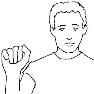 Make a fist, palm facing forward. Keep your thumb next to the index finger.