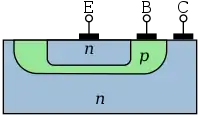 A BJT consists of three differently doped semiconductor regions, the emitter region, the base region and the collector region. These regions are, respectively, p type, n type and p type in a PNP, and n type, p type and n type in a NPN transistor. Each semiconductor region is connected to a terminal, appropriately labeled: emitter (E), base (B) and collector (C).