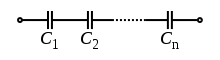 When there are two capacitor of the same capacitance connected in series, the total capacitance of the two capacitors is exactly halved.