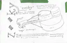 This idea was extended by means of certain previously overlooked materials at a Recycling Center not far from Madison, Wis., where someone attached a flat wooden bar to a cookie tin (on one side) and part of a plastic bottle and a cat food can (on the other side). The resulting fiddle-like contraption, to which further strings or coathanger wires can be added, is the Stradizuki (Zooky for short, or if it is more like a guitar, i.e. big with multiple pluckable plastic bottle bottoms attached, Stratozooky).