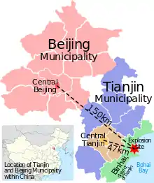 - ↑ Chen, H. (2015, August 13) China explosions: Tianjin blasts 'on seismic scale'. http://www.bbc.com/news/world-asia-china-33901206