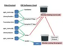 Upon starting the IDE software the programmer usually indicates the file he or she wants to open for editing as source code. As they make changes they might either do a “save as” or “save”. When they have finished entering the source code, they usually direct the IDE to “compile & run” the program. The IDE does the following steps: