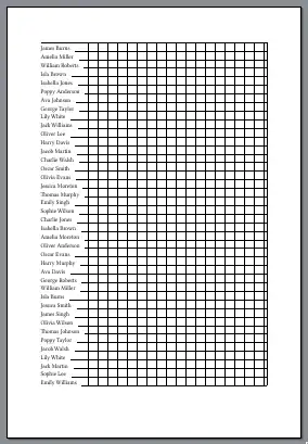 There are two printing exercises: printing a class list with vertical and horizontal lines that form boxes, and printing a calendar page on A4 paper for the current calendar month. You supply the large picture for the top, and the squares with the dates in them are big enough to write in and the page can be blu-takked to a refrigerator door.