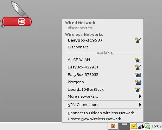 To connect to a wireless network all you have to do is use the network manager applet in the lower right corner again. Left-click on the icon ![]()