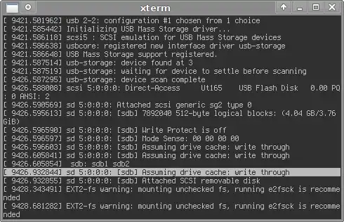 4. Now plug in the USB pen drive or USB-HDD to your computer and open a terminal. Wait for a couple of seconds until the device has settled and type: