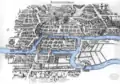 Pic 1: Map of old Konigsberg with rivers and bridges colourised