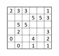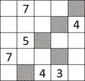 - Certain cells are shaded so that each number indicates total number of cells that are "visible"/ unshaded cells in the same row and column, including cells itself