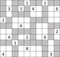 - Shade some cells so that every numbers in the puzzle remain as part of continuous unshaded rectangle of precisely the given cells