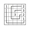 - Draw a single loop by connecting together some dots so that each numbered square has the specified number of adjacent line segment