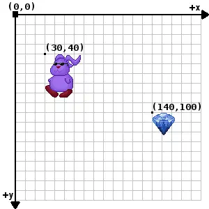 In computer graphics, (x, y) coordinates are used to place images and text on the screen. You might remember coordinate planes from algebra. While the same idea applies here, the coordinate plane is laid out a bit differently.