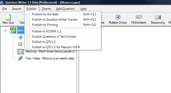 You can use Question Writer Tracker to publish quizzes authored with Question Writer directly to the internet. You'll find the option second in the Publish menu. It's a one-step process - click to publish and it will upload your quiz and give you back the web address which allows your quiz to be accessed online.