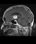 - Intensely enhancing on MRI; may have a diffuse or “cotton wool” appearance on imaging.