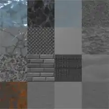 The appearance of parts can be customized with materials. The default material for parts is the plastic material, which makes the parts have a homogeneous color with a slight concrete appearance; the smooth plastic material can be used to have a perfectly homogeneous color. The plastic material is fine for some cases, but more customization can be needed to improve the look of buildings. Materials, when applied to a part, change the texture of that part. They also change that part's density, which has an effect when the part is put in water terrain: parts of some materials (like wood) will float in water while parts of other materials (like slate) will not.