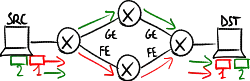 Traffic toward a same destination can not use both the paths at the same time → there are troubles in case of very big traffic toward a certain destination (e.g. a nightly backup between two servers).