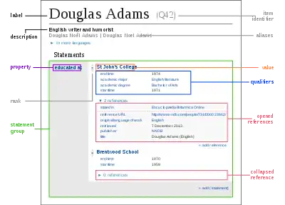 A full query of Douglas Adams education, with rank, qualifiers and references could look like