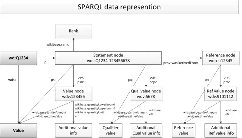 The data on WIKIDATA contains more info than only the triples. For a full description see Wikidata:Glossary.
