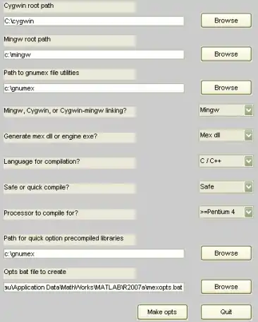 The above options assume that you've installed Gnumex to c:\gnumex and MinGW to c:\mingw. Now hit the Make opts button. Gnumex itself uses 2 mex files shortpath.dll and getpath.dll to be exact, so if you receive an error like this: