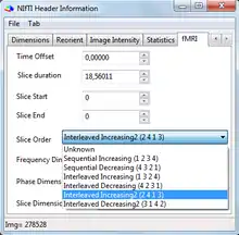21. 1 2 3 Descamps, B., Roggeman, C., Vandemaele, P., & Achten, E. (2007), "Image Aquisition Order and Input Order of BOLD-fMRI Data for Slice Time Correction in fMRI Data Processing Tools", in First Benelux In Vivo MR Methods Symposium 2007 PROGRAM BOOK, doi:1854/10927, archived from the original on 2017-11-03, https://web.archive.org/web/20171103200028/https://biblio.ugent.be/publication/415523/file/447800.pdf, retrieved 2017-11-03