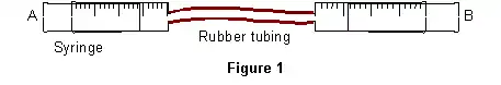 A good way of demonstrating the basic principles of hydraulics is to join two syringes together with rubber tubing to make an watertight seal [see figure 1]. The syringes can be filled with water, oil, or just air. Pushing plunger A causes plunger B to move out and pushing plunger B in causes plunger A to move out. This works even if the syringes are not in the same plane. i.e. if the tubing is bent by 90° as long as there is no kink in the tube that prevents the free flow of fluid.