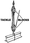 Is a system of two or more pulleys with a rope or cable threaded between them, usually used to lift or pull heavy loads. The more rope involved, the greater the mechanical advantage. The pulleys are assembled together to form blocks and the blocks are paired so that one is fixed and one moves with the load. The rope is threaded, or rove, through the pulleys to provide mechanical advantage that amplifies the force applied to the rope.