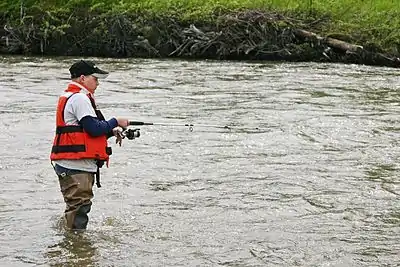Demonstrate the proper use of two different types of fishing equipment.
