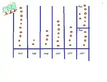8. The facilitator will ask for a volunteer to lead their group in placing of beans for each resource. The group will negotiate the relative number of coins per year, keeping a maximum of 10 per column.