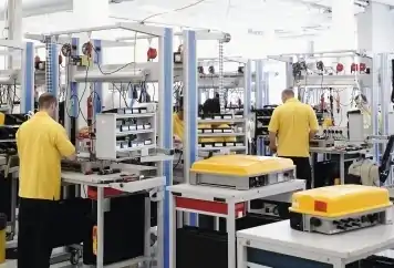 A variety of electrical and electronic devices are needed for automated machines. This includes wires, insulators, motors, generators, batteries, switches and relays, transformers, resistors, capacitors, inductors, filaments, circuit boards, and microelectronics. The electric shop element is not one big machine, but a collection of a number of smaller elements that fill in as many these kinds of items as feasible. For example, raw wire may be rolled in the hydraulic press, and motor frames machined in the Lathe or Mill, but coil winding to make motors is a specialized task for the electric shop. The more specialized components, like microprocessor chips, are simply bought, but there should be an intermediate range of items that can be made in the factory. Figure 7 shows an electrical production workshop. We propose at least partially automated fabrication and assembly.