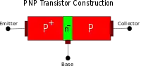A transistor is constructed by placing a oppositely doped semiconductor material between two similarly doped semiconductors. Or placing n-type material between two p-type material which forms the pnp-transistor or by placing a p-type material between two n-type semiconductor which forms npn-transistor.